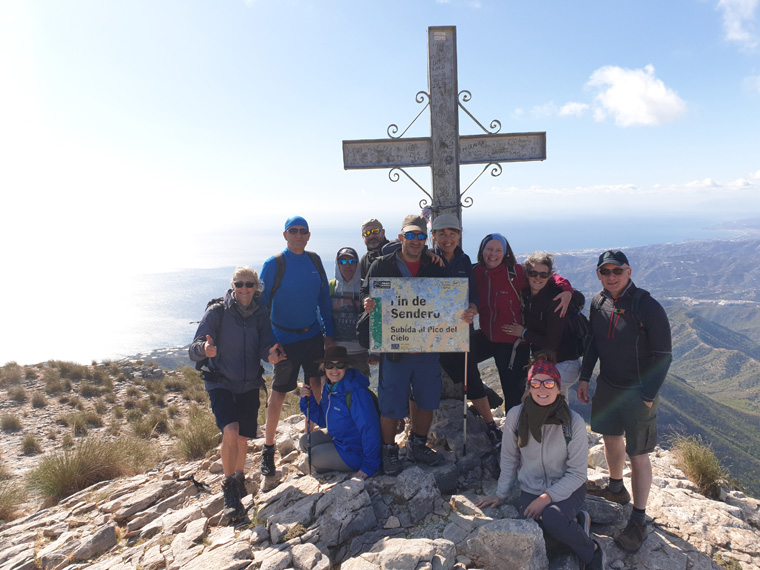 It was a great day, with so many lovely friends, we were so impressed that they all made it to the top. The previous day we had completed a 4 hour walk in Frigiliana. They loved that walk so much that 12 of them said they would walk up El Cielo with us the following day. At 1508m it is one of the highest mountains in the area, and much higher than most of them had ever done. We were concerned that they could all make it, being of different walking abilities but they all were very keen and could not be put-off. The night before we had tried to explain to them that it is 4 hours of uphill walking and 3 to 4 hours down the same path. Higher than Snowdon or Ben Nevis, surprisingly no-one would be dissuaded. It was lovely to walk with so many friends.