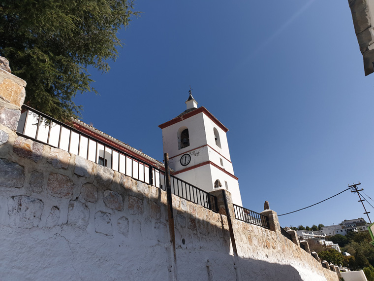We turned back down the street, passing house number 5 on Calle Rosario, taking a track past houses and dogs. The path then tracks across the countryside, with great views to the mountains to the south, passing another Era together with an information board. Eventually we arrived in the final village for today of Pitres. After taking our time to look at the Town Hall in the main Square, with a beautiful tiled frieze, we went for a coffee at a cafe on the square. Then followed the road back to our car. A thoroughly enjoyable day, more relaxing than most of our walks.